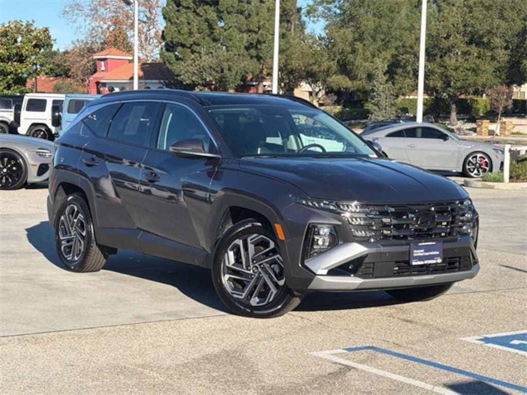 Westlake Hyundai is proud to present this Hyundai Tucson Hybrid in Titanium Gray and Black. Certified. Recent Arrival! CARFAX One-Owner. 37/36 City/Highway MPG Titanium Gray 2025 Hyundai Tucson Hybrid Limited AWD 6-Speed Automatic 1.6L I4 DGI Hybrid Turbocharged DOHC 16V LEV3-SULEV30 1.6L I4 DGI Hybrid Turbocharged DOHC 16V LEV3-SULEV30.